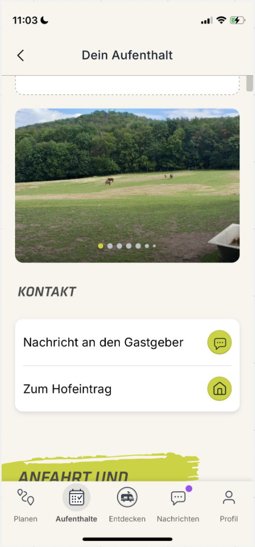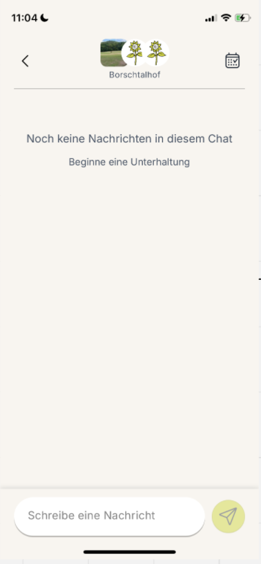 Die In-App-Chat-Funktion ermöglicht eine unkomplizierte und strukturierte Kommunikation zwischen Reisenden und Gastgebern direkt in der Landvergnügen-App. Hier können Rückfragen oder spezifische Details effizient geklärt werden. Chats sind auf allen Geräten synchron.